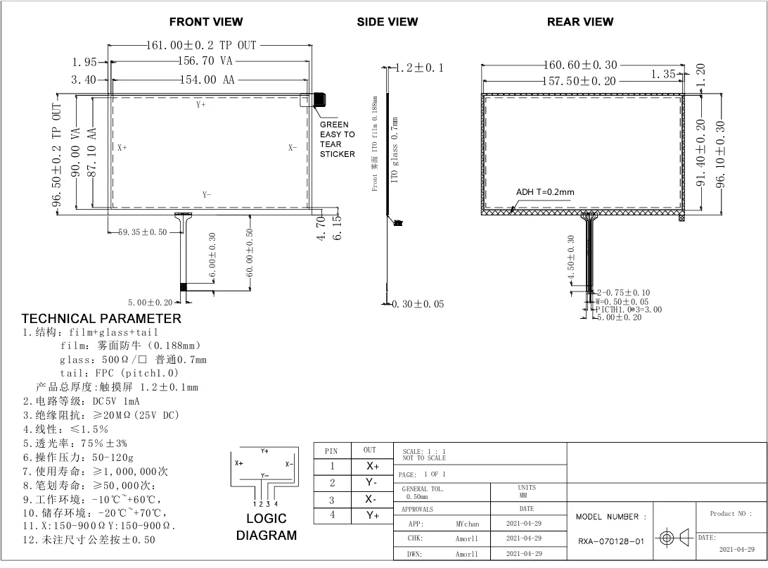 Đặc tả mô -đun màn hình cảm ứng Tianfu