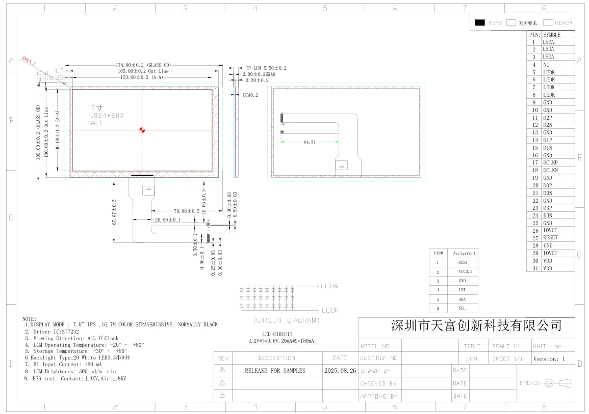 Do độ phân giải cao 1024×600; tuổi thọ đèn nền ≥ 30.000 giờ, góc nhìn không có IPS của mô-đun màn hình cảm ứng In-cell mỏng 7,0 inch có độ truyền qua cao, nó hoàn hảo cho thời đại này.